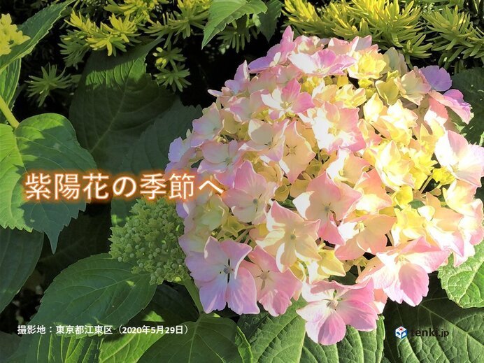 きょう30日は、北海道から東北は大体晴れ。関東や東海と北陸では、昼頃から所々で雨や雷雨。近畿や中国、四国は晴れるが、九州から下り坂。沖縄では梅雨空。関東では雨の季節を代表する紫陽花が色づき始めた。