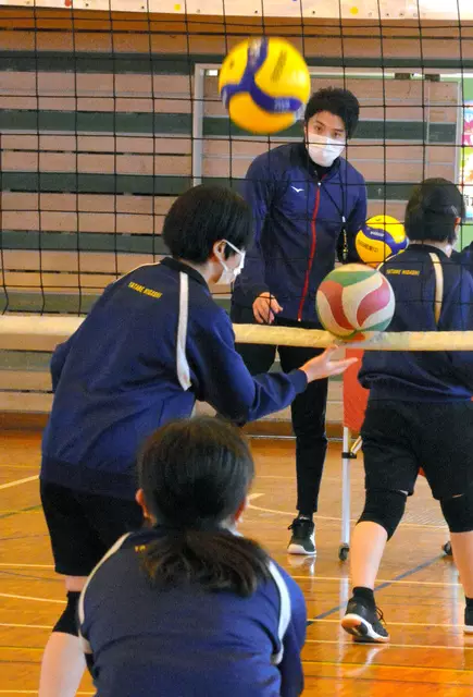 「オッケー、ナイス!」。茨城県つくば市立谷田部東中学校の体育館。コートを駆け回るバレーボール部の女子部員に声をかけるのは、Vリーグ「つくばユナイテッドSunGAIA」の滝沢陽紀(はるき)選手(30)だ。部員が集中力を保てるように10~15分単位で練習メニューを変える。ほめるだけでなく、「おしゃべりをやめないと」と注意して雰囲気を引き締めることも。