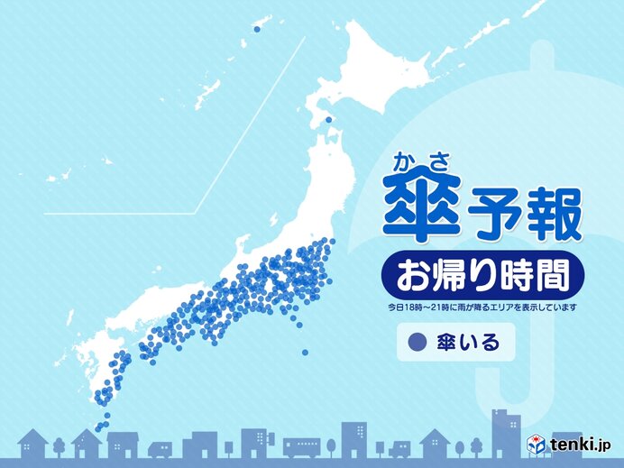 きょう7日の夜は、関東から九州南部で次第に雨が降りだすでしょう。雨具をお持ち下さい。