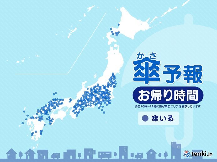 7日の夜は、北海道の南西部や東北南部から九州にかけて傘が必要に。
