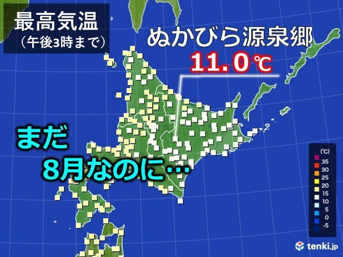 8月に最高気温が11度以下は2002年以来18年ぶり