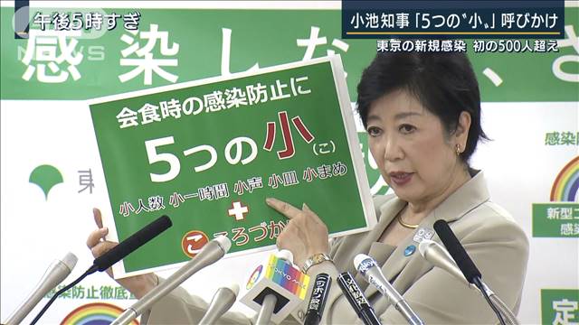 19日に全国で確認された新型コロナウイルス新規感染者数は2384人と、2日連続で過去最多を更新しました。 東京都では534人と、初めて500人を超えました。小池知事は緊急会見を開き、会食をする際の新たな感染予防策を呼び掛けました。