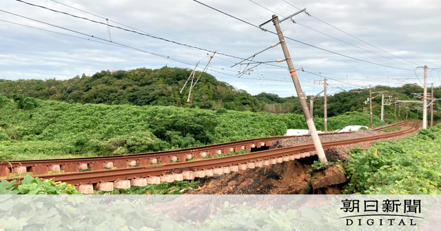 JR西日本によると、山陽線は大雨の影響で14、15日は運転を見合わせていた。崩落は、運転再開に向けた15日の点検で見つかった。復旧工事のため、山陽線は16日から厚東(ことう)―厚狭間で運休する。